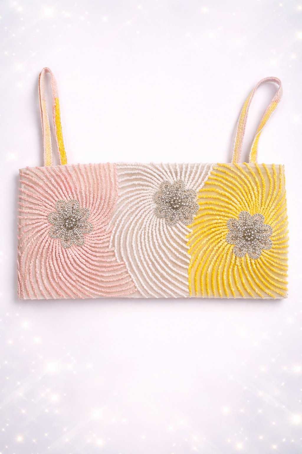 - Hand-embroidered crystals