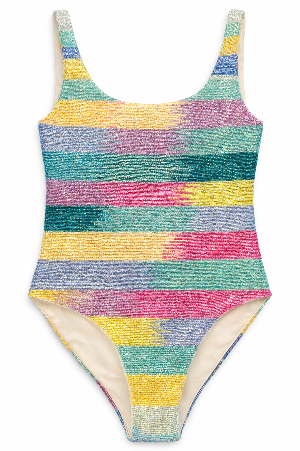 We recommend washing your swimsuit after contact with chlorinated or salt water with cold water, lay flat to dry, and do not iron.