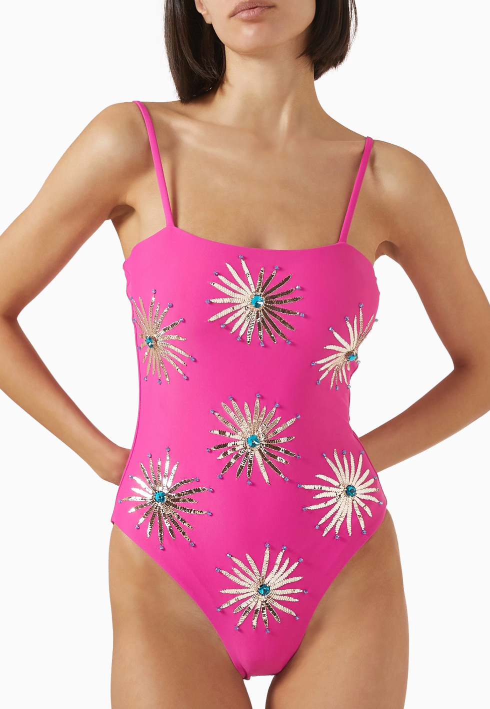 We recommend washing your swimsuit after contact with chlorinated or salt water with cold water, lay flat to dry, and do not iron.