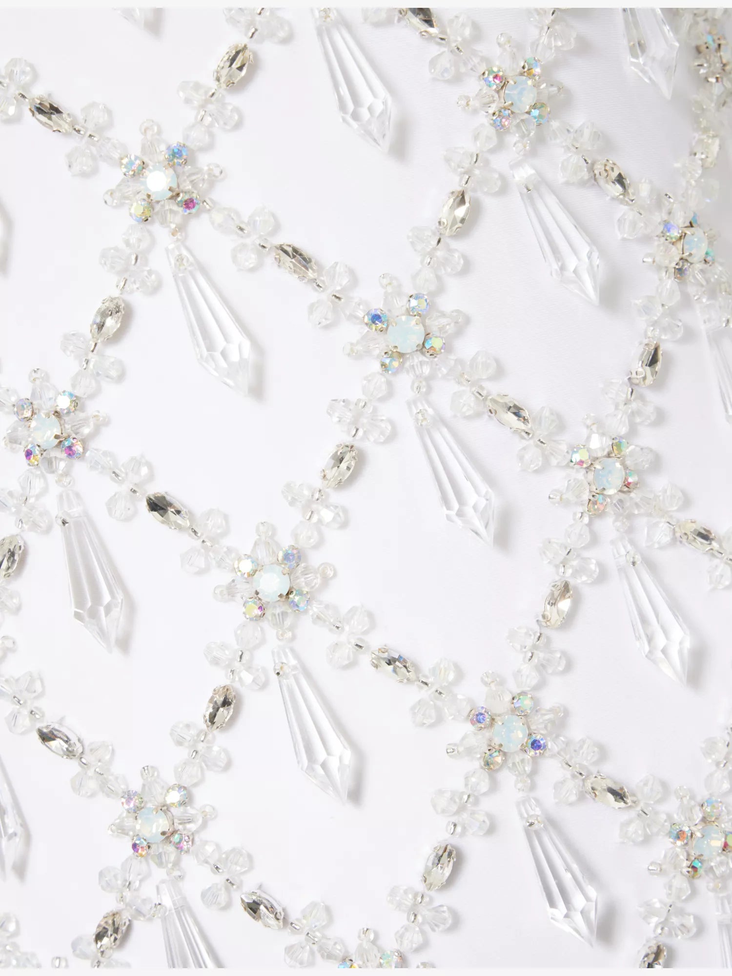 Due to the delicate nature of the hand embroidery, please note that over time, there may be imperfections (loss of crystals).