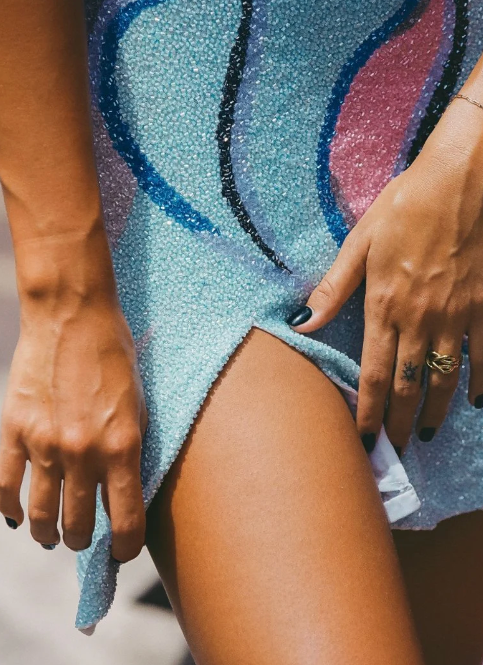 OceanusSofia Hand Beaded Blue Party Dress