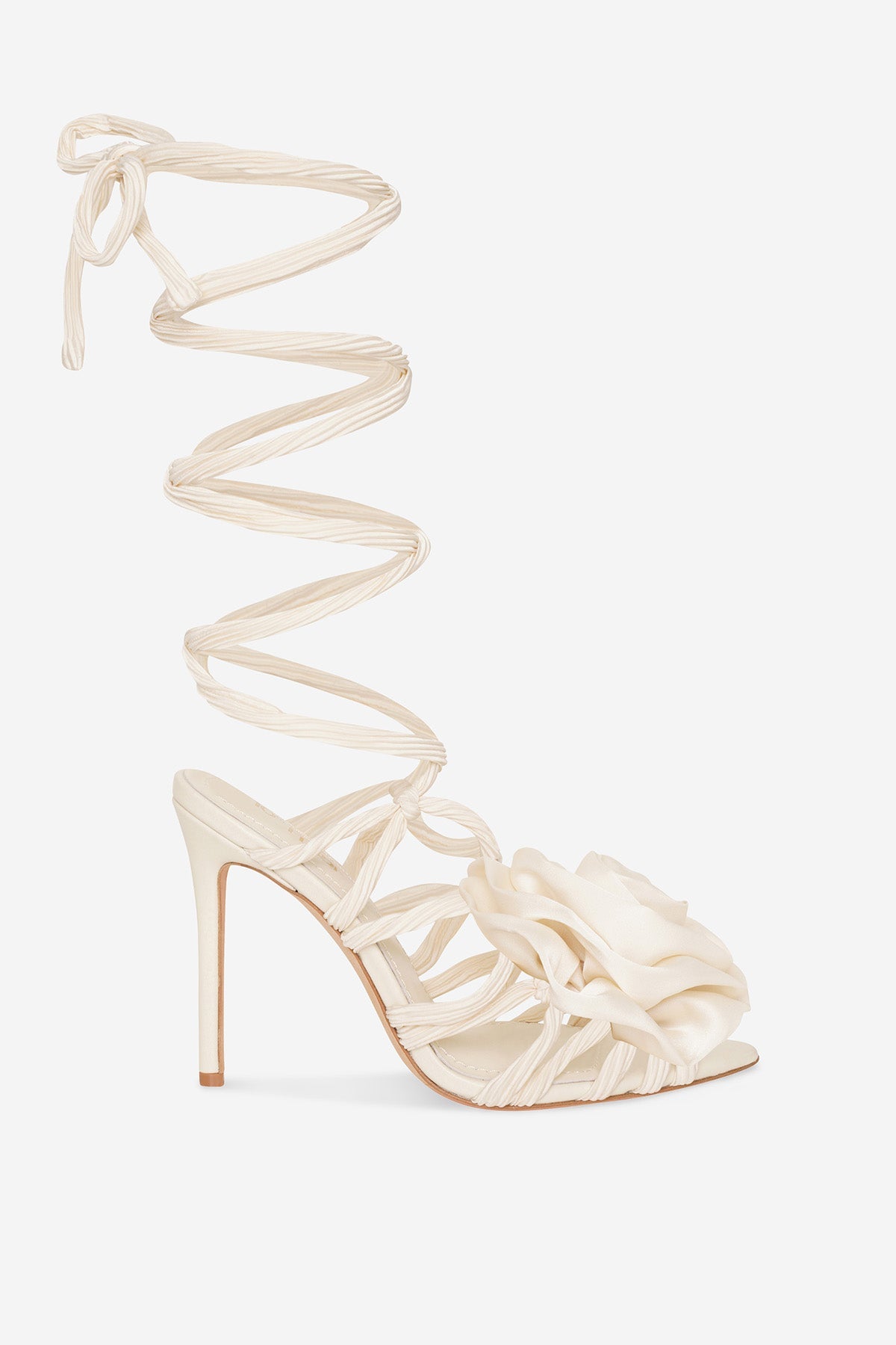 • Plissé satin and leather ankle tie sandals