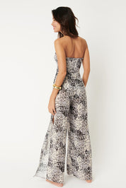 Introducing the Ôsalé Benirras Talitha swimsuit, a versatile piece that can be styled to your preference. Featuring wide straps that can also be cleverly pulled to create a strapless look, this swimsuit is perfect for those who want options. The black and ivory serpent motif is highlighted by specks of gold thread on the recycled textured fabric, making it a stunning addition to your swimwear collection. Fully lined with removable pads, this swimsuit offers both comfort and support. Complete the look with the Benirras Lolo trousers for a chic and sophisticated beach outfit.